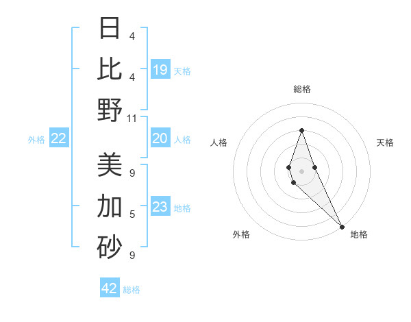 日比野 美加砂さんを姓名の画数から五運を鑑定