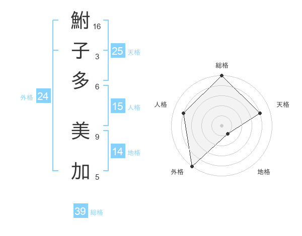 鮒子多 美加さんを姓名の画数から五運を鑑定