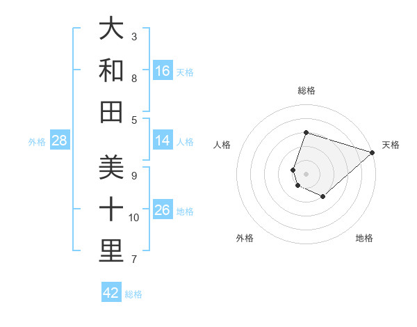 大和田 美十里さんの天格は16画の5点!