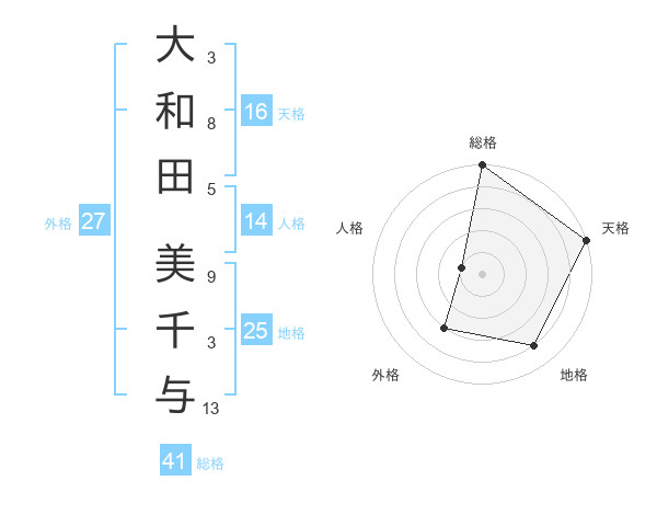 大和田 美千与さんを姓名の画数から五運を鑑定