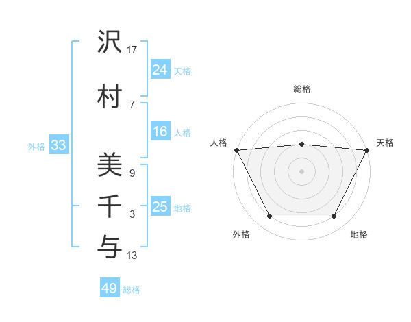 沢村 美千与さんを姓名の画数から五運を鑑定