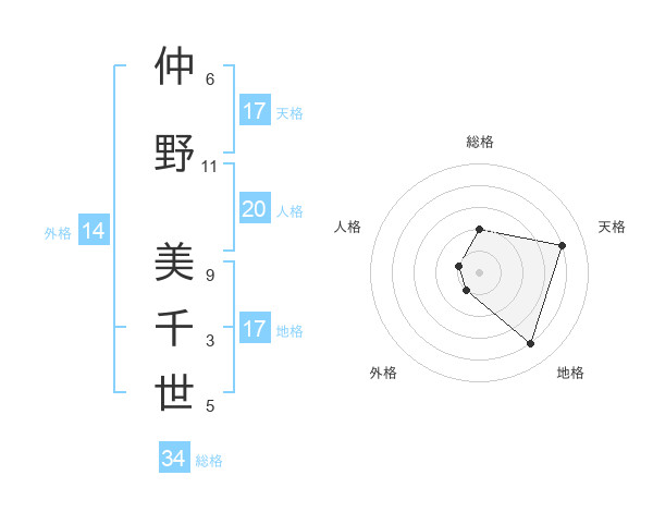 仲野 美千世さんを姓名の画数から五運を鑑定