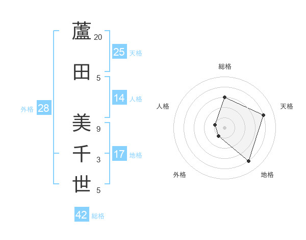 蘆田 美千世さんを姓名の画数から五運を鑑定