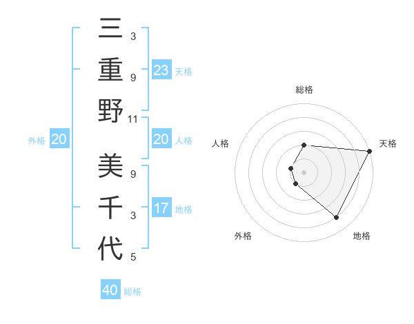 三重野 美千代さんの天格は23画の5点!