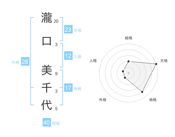 瀧口 美千代さんを姓名の画数から五運を鑑定