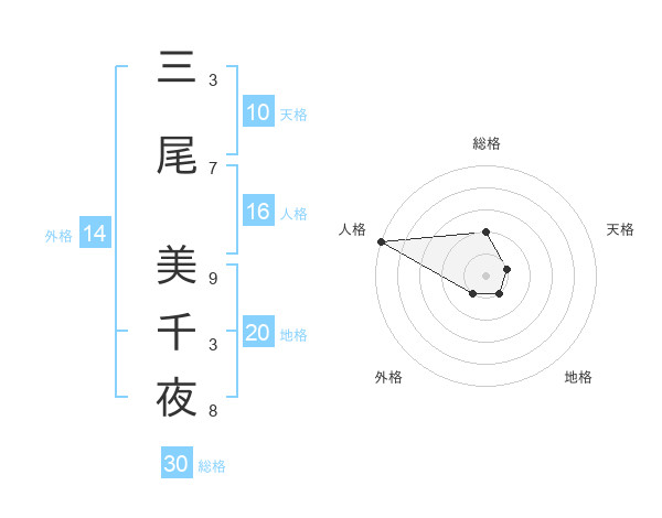 三尾 美千夜さんを姓名の画数から五運を鑑定