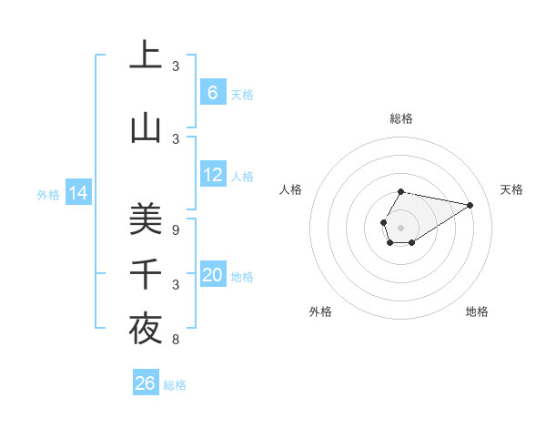 上山 美千夜さんを姓名の画数から五運を鑑定