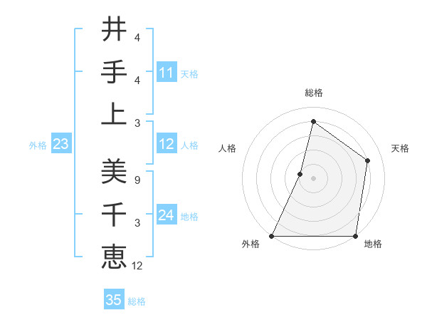 井手上 美千恵さんの総格は35画の4点!