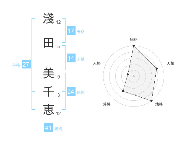 淺田 美千恵さんを姓名の画数から五運を鑑定