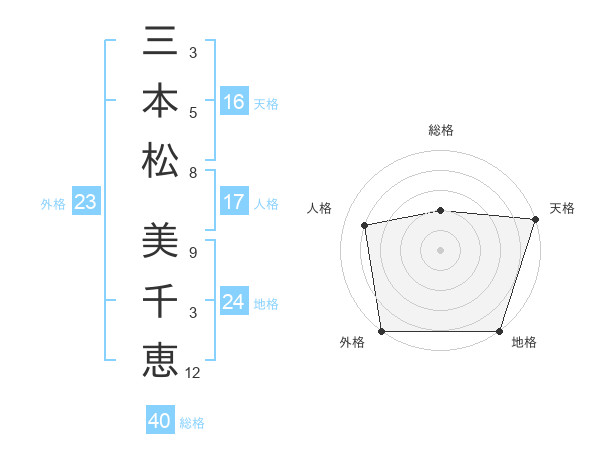 三本松 美千恵さんを姓名の画数から五運を鑑定