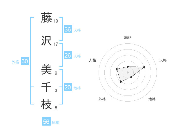 藤沢 美千枝さんの総格は56画の1点!