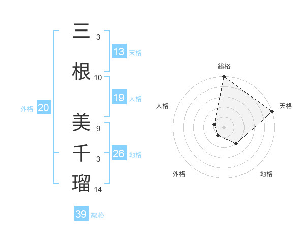 三根 美千瑠さんの天格は13画の5点!