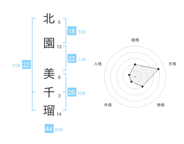 北園 美千瑠さんを姓名の画数から五運を鑑定
