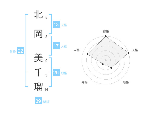 北岡 美千瑠さんを姓名の画数から五運を鑑定