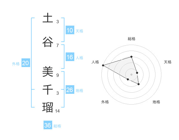 土谷 美千瑠さんを姓名の画数から五運を鑑定