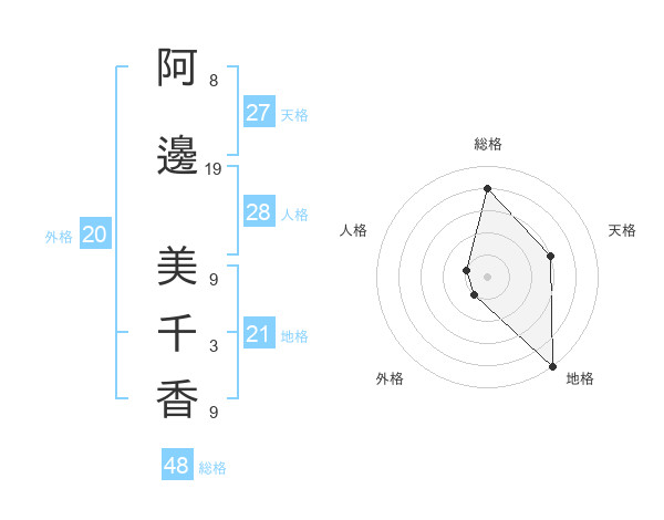 阿邊 美千香さんを姓名の画数から五運を鑑定