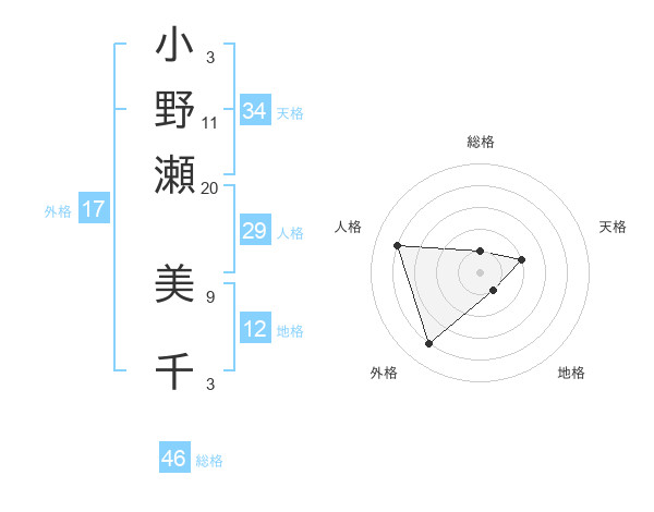 小野瀬 美千さんを姓名の画数から五運を鑑定