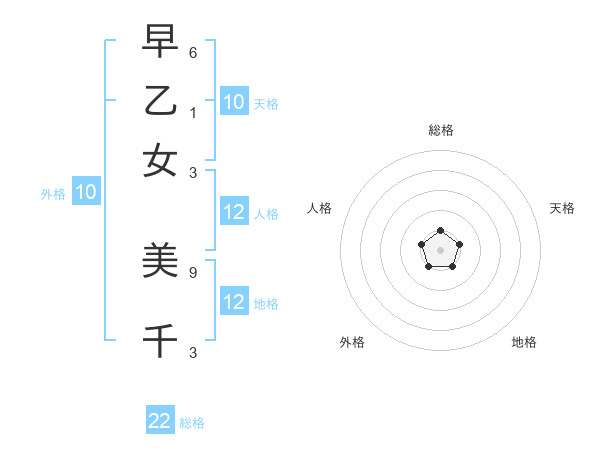 早乙女 美千さんを姓名の画数から五運を鑑定