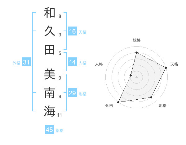 和久田 美南海さんを姓名の画数から五運を鑑定