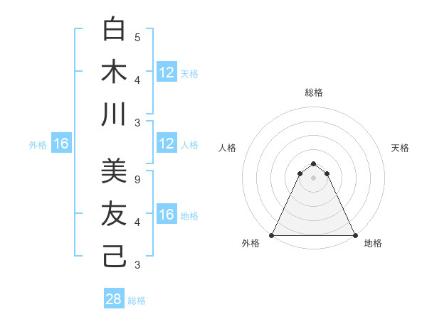 白木川 美友己さんの外格は16画の5点!