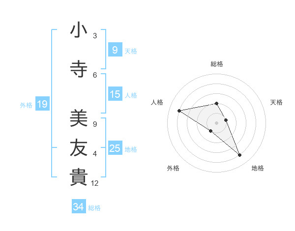 小寺 美友貴さんの総格は34画の2点!