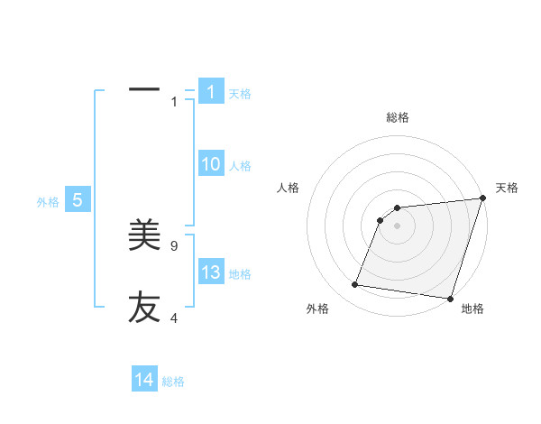 一 美友さんの総格は14画の1点!