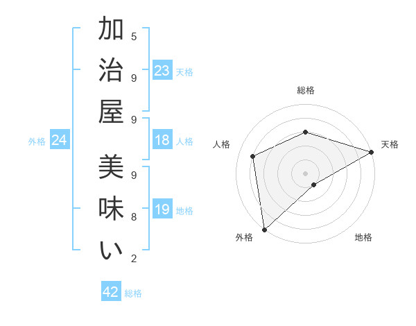 加治屋 美味いさんを姓名の画数から五運を鑑定
