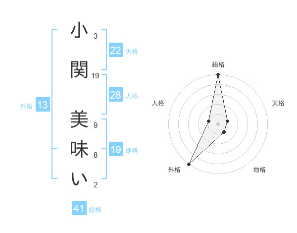 小関 美味いさんの外格は13画の5点