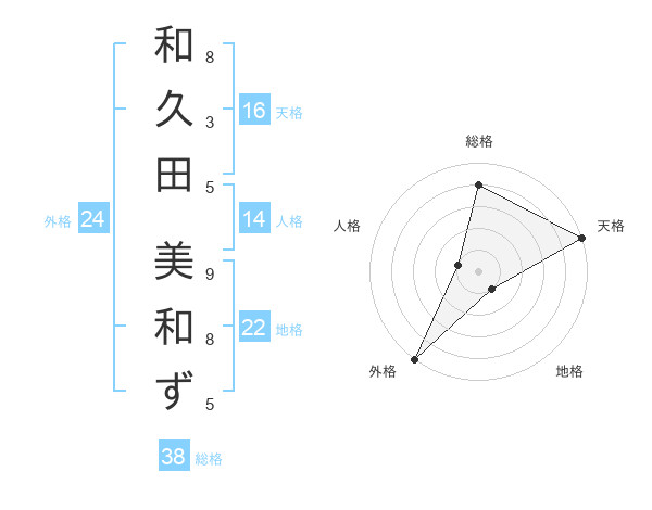 和久田 美和ずさんを姓名の画数から五運を鑑定