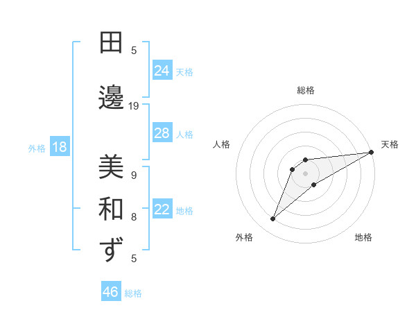 田邊 美和ずさんを姓名の画数から五運を鑑定