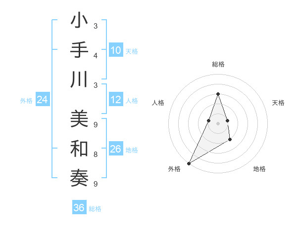 小手川 美和奏さんを姓名の画数から五運を鑑定