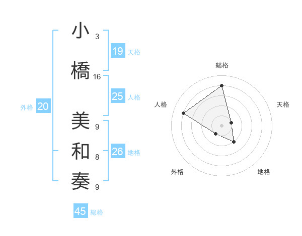 小橋 美和奏さんを姓名の画数から五運を鑑定