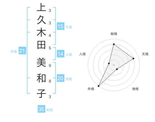 上久木田 美和子さんを姓名の画数から五運を鑑定