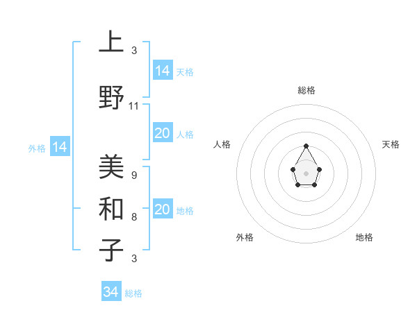 上野 美和子さんの総格は34画の2点