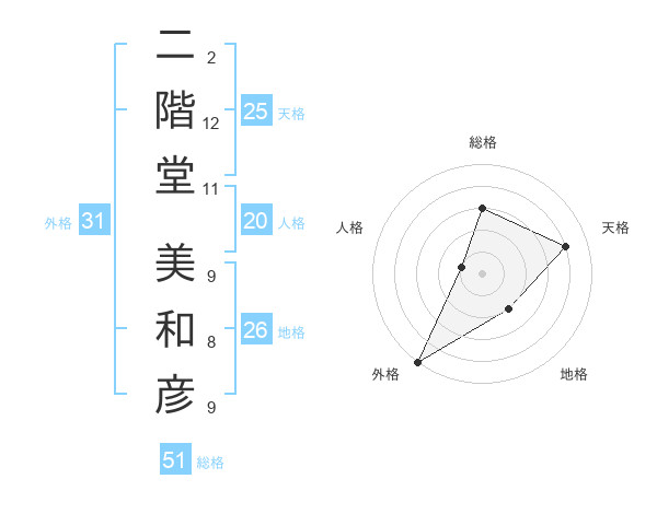 二階堂 美和彦さんの総格は51画の3点!