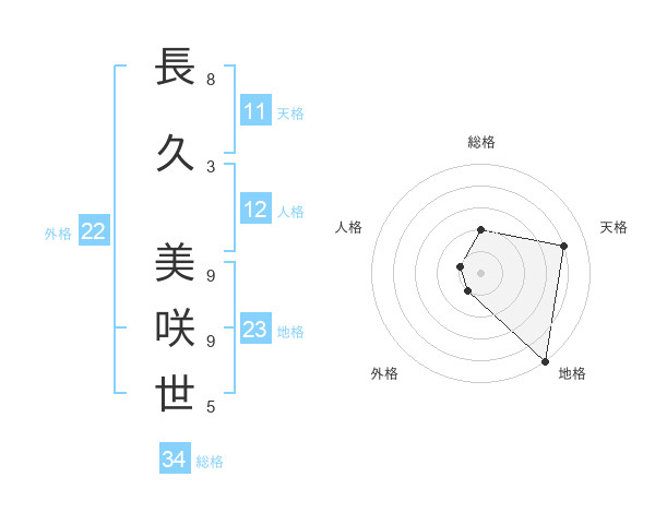 長久 美咲世さんの総格は34画の2点!
