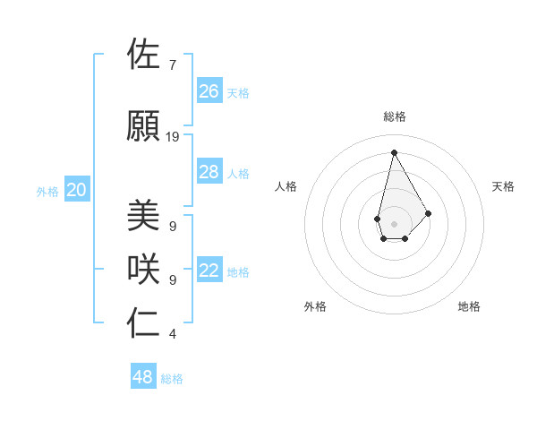 佐願 美咲仁さんを姓名の画数から五運を鑑定