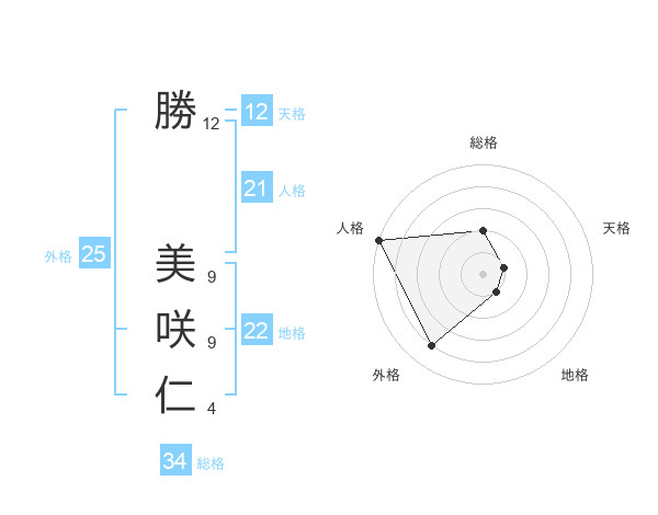 勝 美咲仁さんを姓名の画数から五運を鑑定