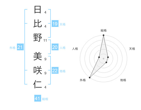 日比野 美咲仁さんを姓名の画数から五運を鑑定