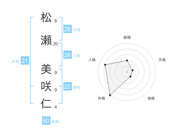 松瀬 美咲仁さんを姓名の画数から五運を鑑定