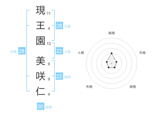 現王園 美咲仁さんの総格は50画の2点