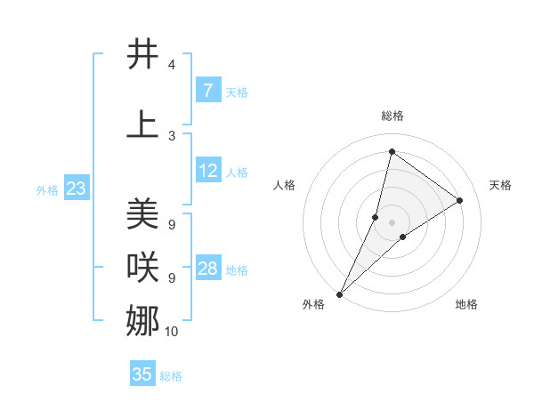 井上 美咲娜さんを姓名の画数から五運を鑑定