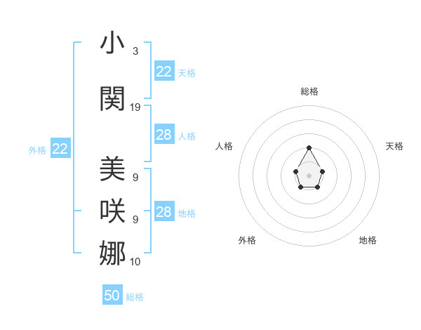小関 美咲娜さんを姓名の画数から五運を鑑定
