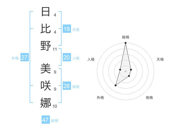 日比野 美咲娜さんを姓名の画数から五運を鑑定