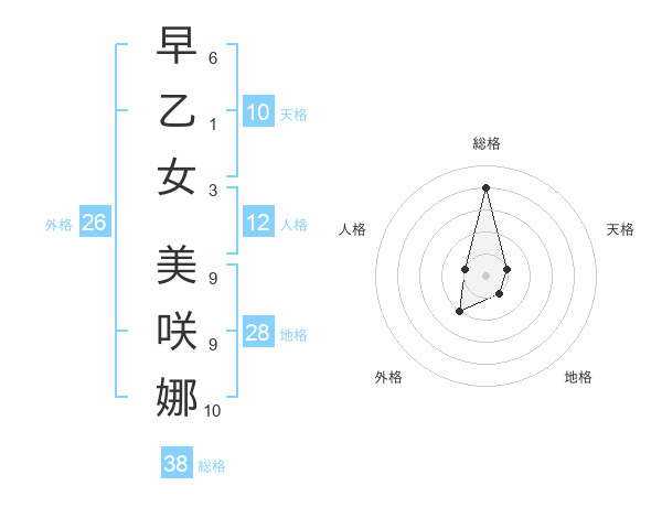 早乙女 美咲娜さんを姓名の画数から五運を鑑定