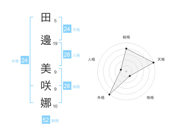 田邊 美咲娜さんの外格は24画の5点