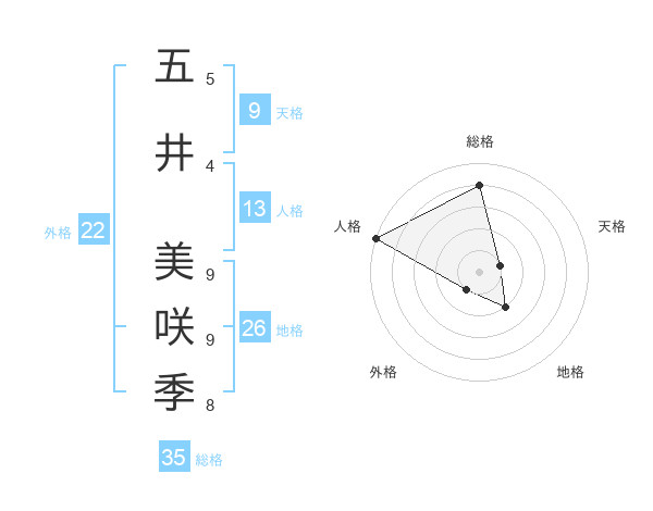 五井 美咲季さんの総格は35画の4点!