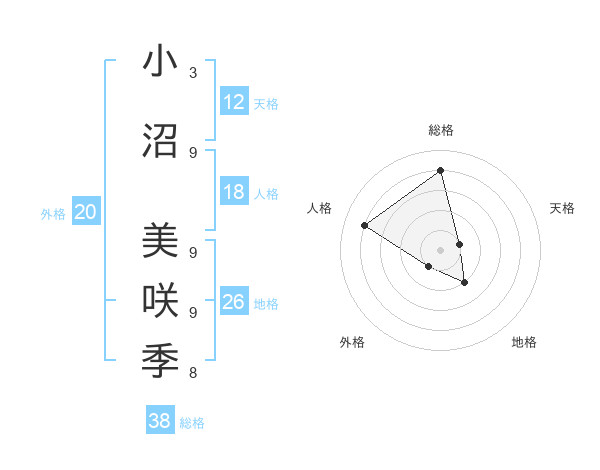 小沼 美咲季さんを姓名の画数から五運を鑑定