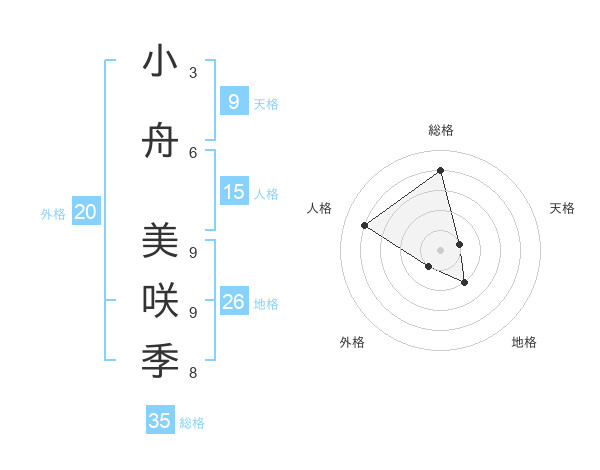 小舟 美咲季さんの総格は35画の4点!