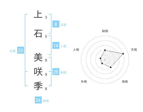 上石 美咲季さんの天格は8画の4点!